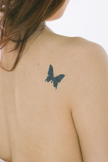 お洒落のワンポイントに!ミニサイズのタトゥーシール「青揚羽」。