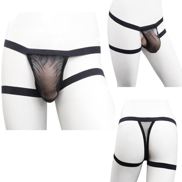 スケスケ黒メッシュ!ショーツのサイドをカットした、Tバック風メンズランジェリー。
