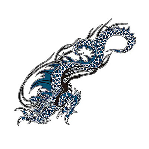 神秘的な青い龍を身にまとえる、レギュラーサイズのタトゥーシール「青ドラゴン2」。