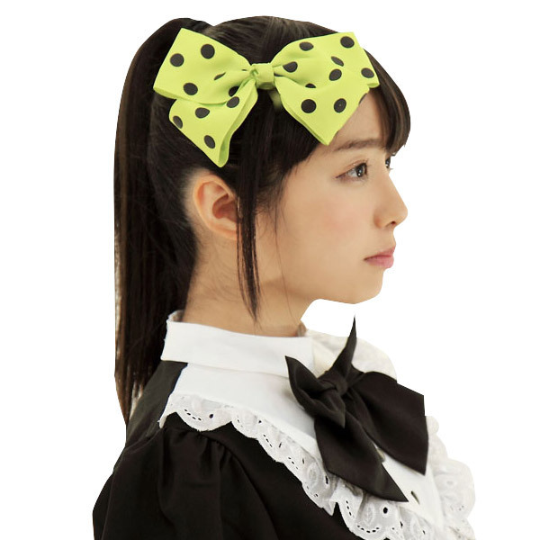 オシャレのワンポイントに♪レトロポップなグリーンドットのヘアリボン。