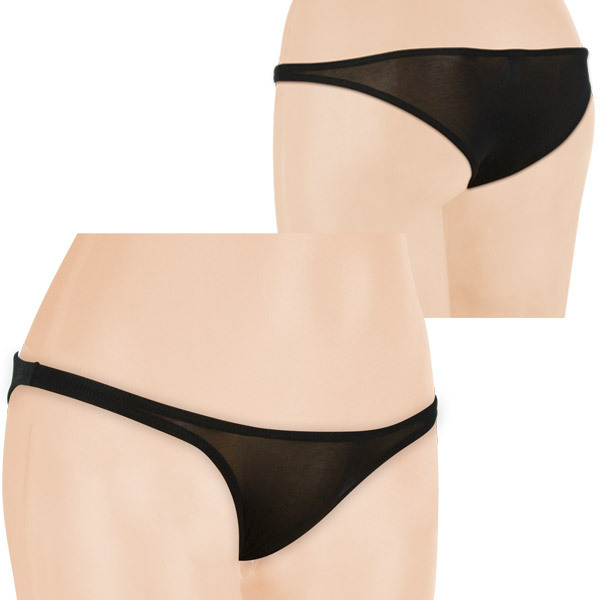 ●大人ブラックの極薄シースルー●サラッと快適な質感&穿き心地●全方向に伸縮するストレッチ力●ややローライズな浅い穿き込み●後姿で色気を放つハーフバック●サイド細めのセクシー仕様。