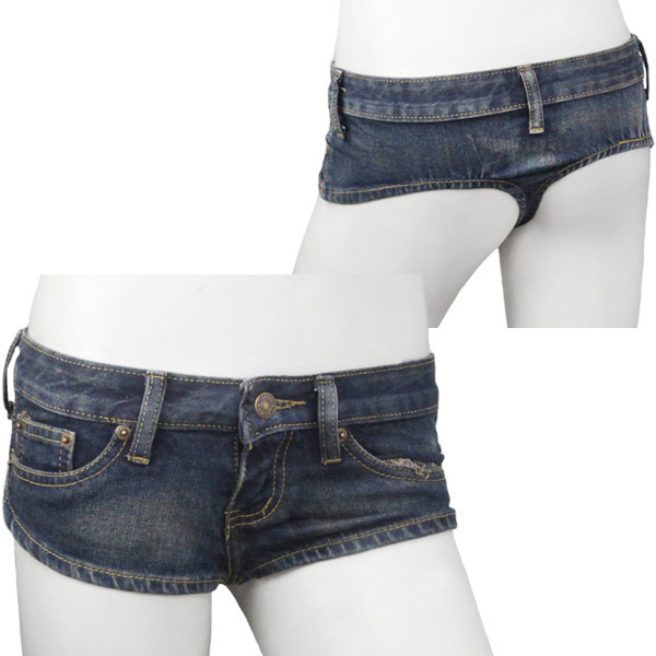 まるでTバックショーツ?前も後ろも露わになるセクシーなデニムのホットパンツ。