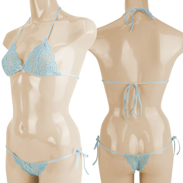 > ストレッチフラワー総レースブラ&ショーツ サックス