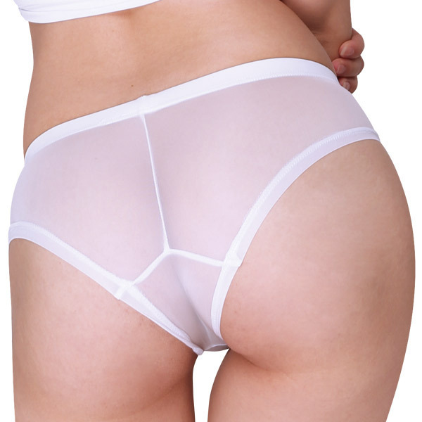 メンズライクなボクサーパンツながら、肌を透かすシースルー素材でセクシーさもばっちり備えたショーツ。
