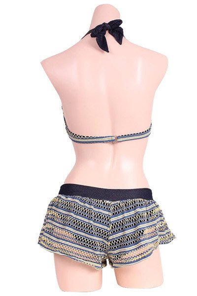 > デニムコラボメッシュレースビキニ ショートパンツ3点セット エメラルドグリーン