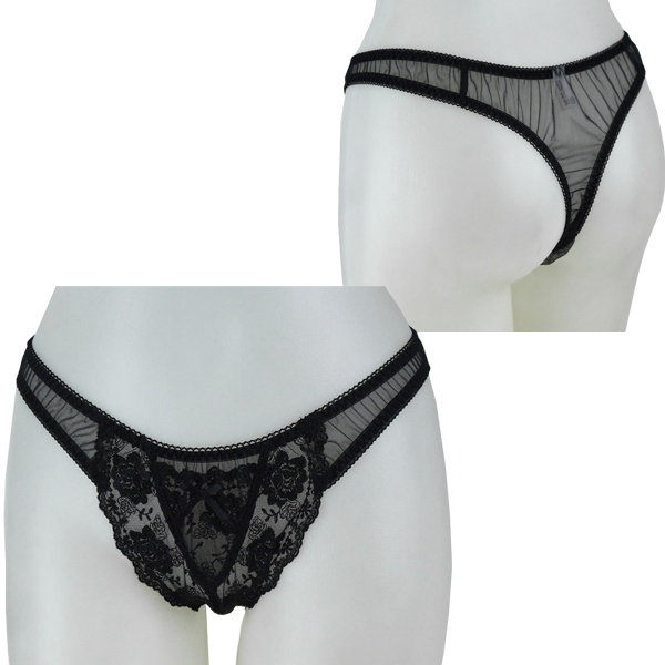 > 2Lサイズ レース&シースルー極薄Tバック ブラック