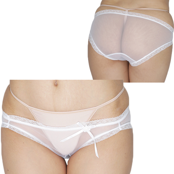 穿いているのに穿いてないような透け感で誘惑する極薄生地の日本製フルバック(白)。