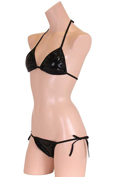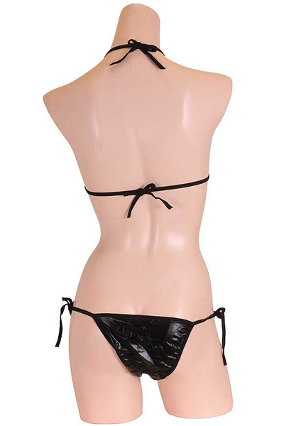 ギラリと光る黒のメタリック生地が格好いいビキニセット(黒)。