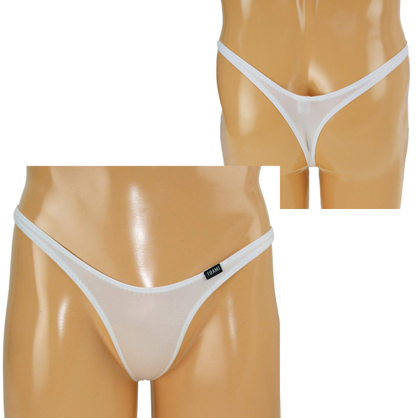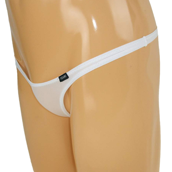 ギリギリまで魅せるハイレグ仕様の男性用Tバック(白)。