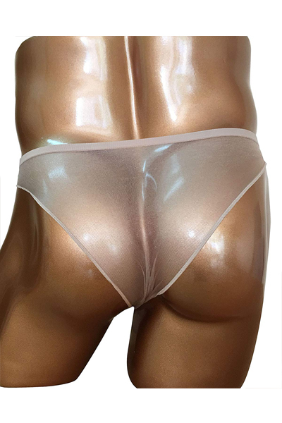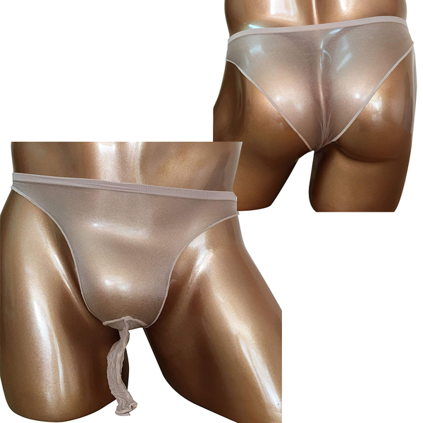 前も後ろもスケスケ!露出度満点なおちんちんポケット付きメンズ用ストッキング風パンツ。
