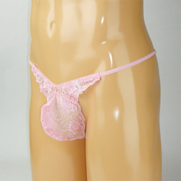 > メンズ スケスケシースルーレース付き脇細Gスト ピンク L
