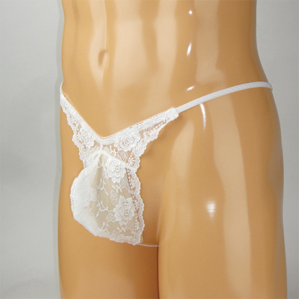 > メンズ スケスケシースルーレース付き脇細Gスト ホワイト M