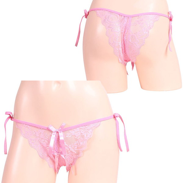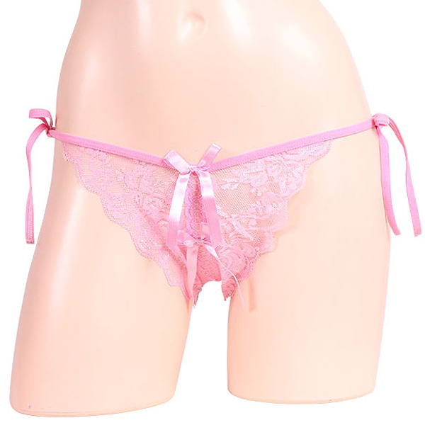 > 女らしさ満開サイドリボンオープンショーツ ピンク