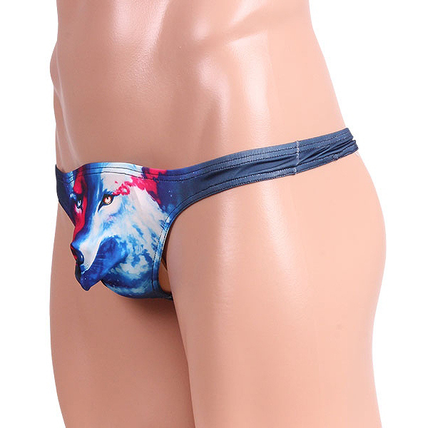 フロントに狼のイラストがプリントされたお洒落なメンズ用Tバック。