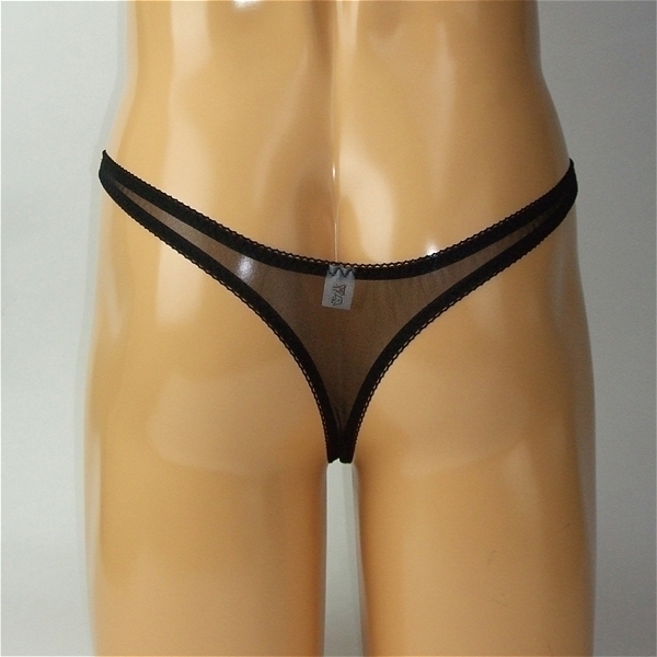 > メンズ スケスケシースルー素材のセクシーな生地にレース付きぞうさん貫通型TB ブラック