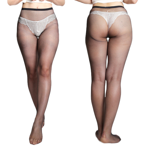 ウエストまで切り替えなしのダイヤ柄メッシュパンティストッキング。