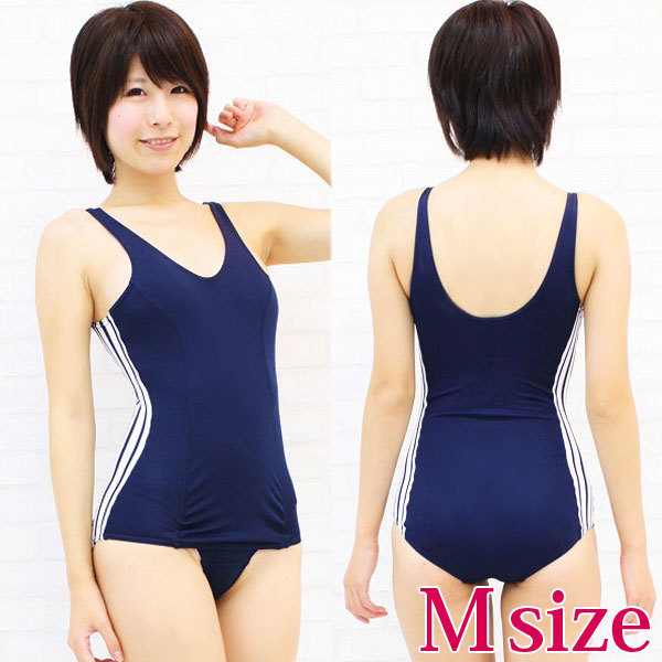 紺に白ラインが懐かしさを醸し出す!水抜き付きスクール水着。