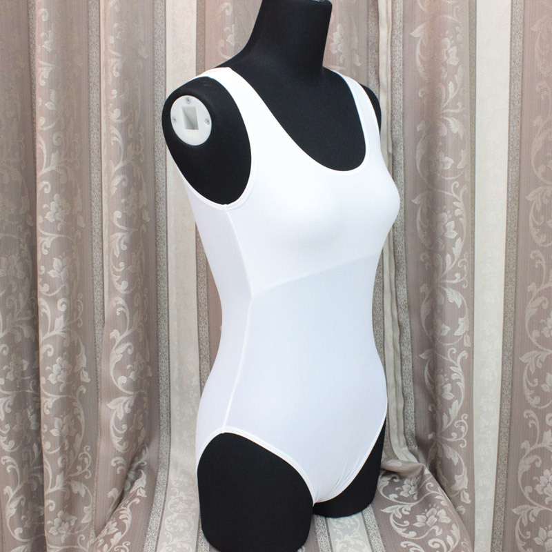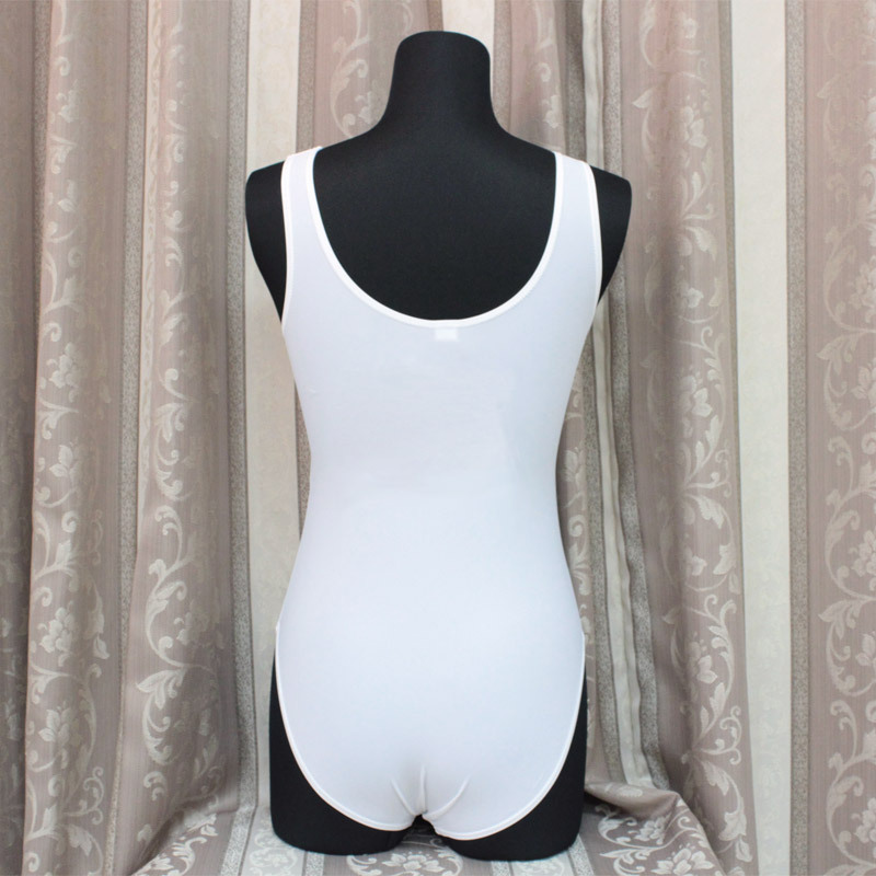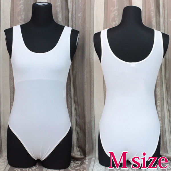 お尻がはみ出ないフルバックデザイン!旧スク水風、ピュアホワイトのシンプルなワンピース水着。