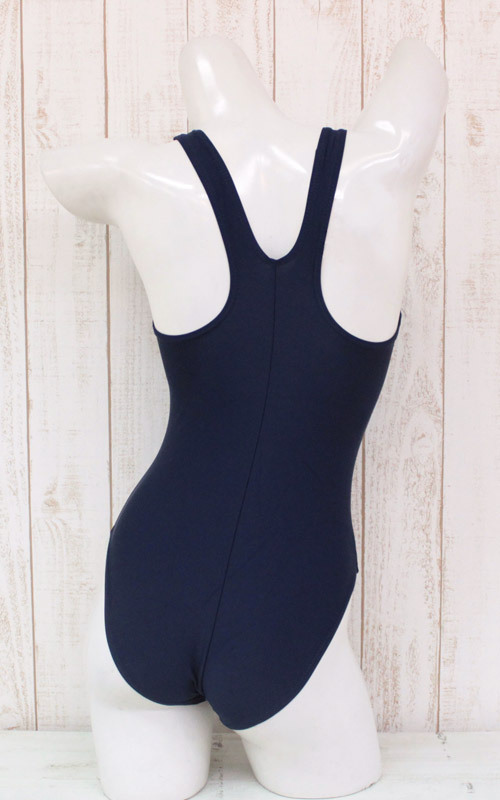 「スク水」と言えば、やっぱり紺色!背中は少し現代寄りのタンクトップデザインになっています。