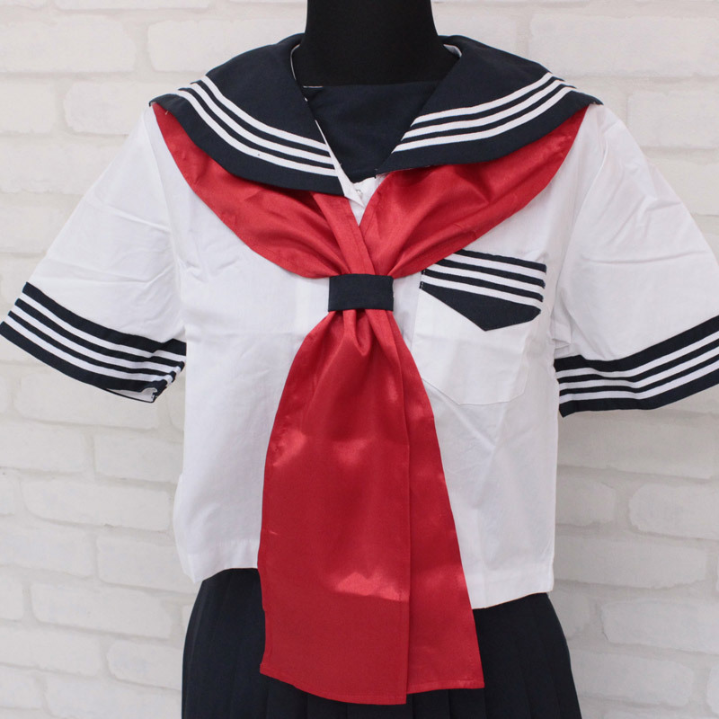 存在感バツグン!セーラー服コスプレには欠かせない、赤色サテンの大きめスカーフ(単品)。
