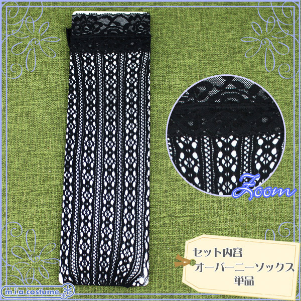 ●膝上丈のオーバーニーハイソックス●ブラックカラーの花柄メッシュ●履き口部分にフラワーレースをON●ズレ落ちにくいすべり止め付きで安心●80デニール・サイズ140〜160cm。