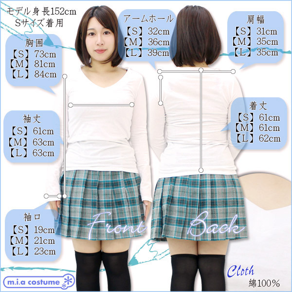 コットン生地100%仕様で着心地抜群!何枚持っていても欲しくなるV字ネックの長袖カットソー(白)。