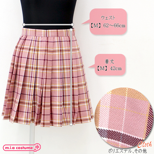 自分流にアレンジして制服コーデを楽しもう!ピンク×キャメルの可愛いチェック柄プリーツスカート単品。