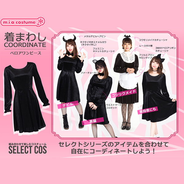 着回し力がすごい!セレクトしてオリジナルのコーディネートが楽しめちゃうコスプレシリーズ!ベロアワンピースはクラシカルなテイストにぴったり。