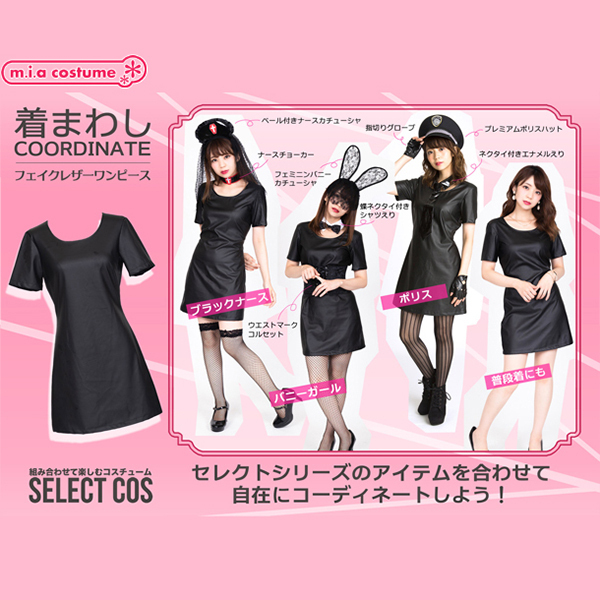 着回し力が高すぎる!セレクトすることでオリジナルのコーディネートが楽しめちゃうコスプレシリーズ!フェイクレザーワンピースはクールなテイストにぴったり。