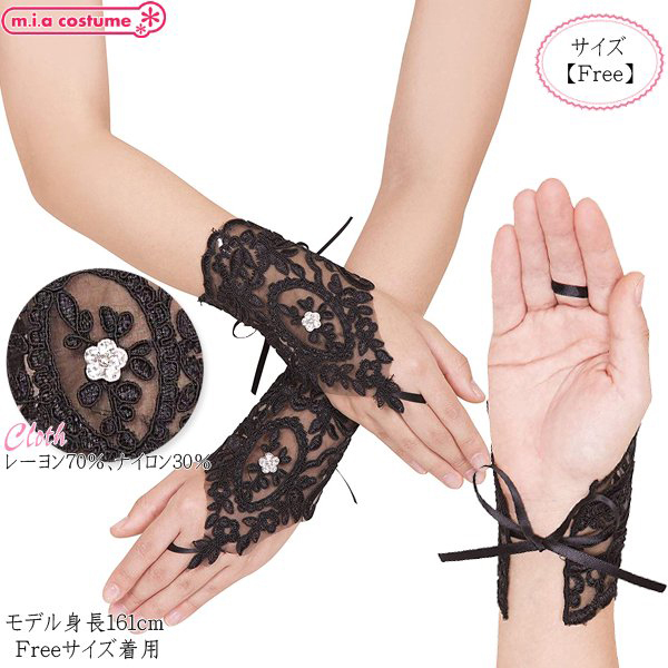 中指を通して手の甲に装着するタイプのレースグローブで、長く美しい指と腕を主張するときにも役立ちます。
