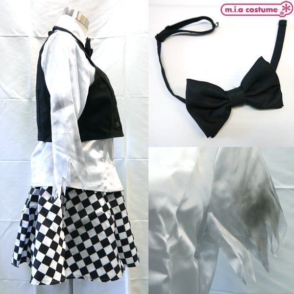 シャツ、スカート、ベスト、帽子、それに長さ調節が可能な蝶ネクタイが付いてこのお値段♪セット内容が充実したトランプマジシャン風のコスチュームです。