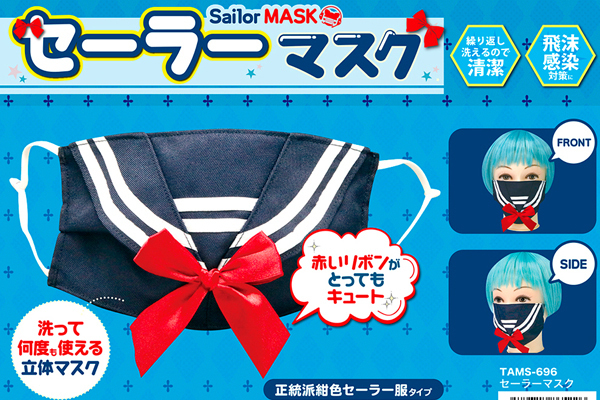 定番の紺色セーラーをそのままマスクにしたようなデザインが特徴!鼻から顎までしっかり覆い隠します。