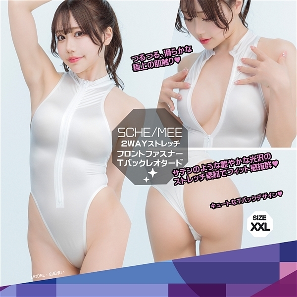 > FittySatinフロントファスナーレオタード (WHITE XXL)